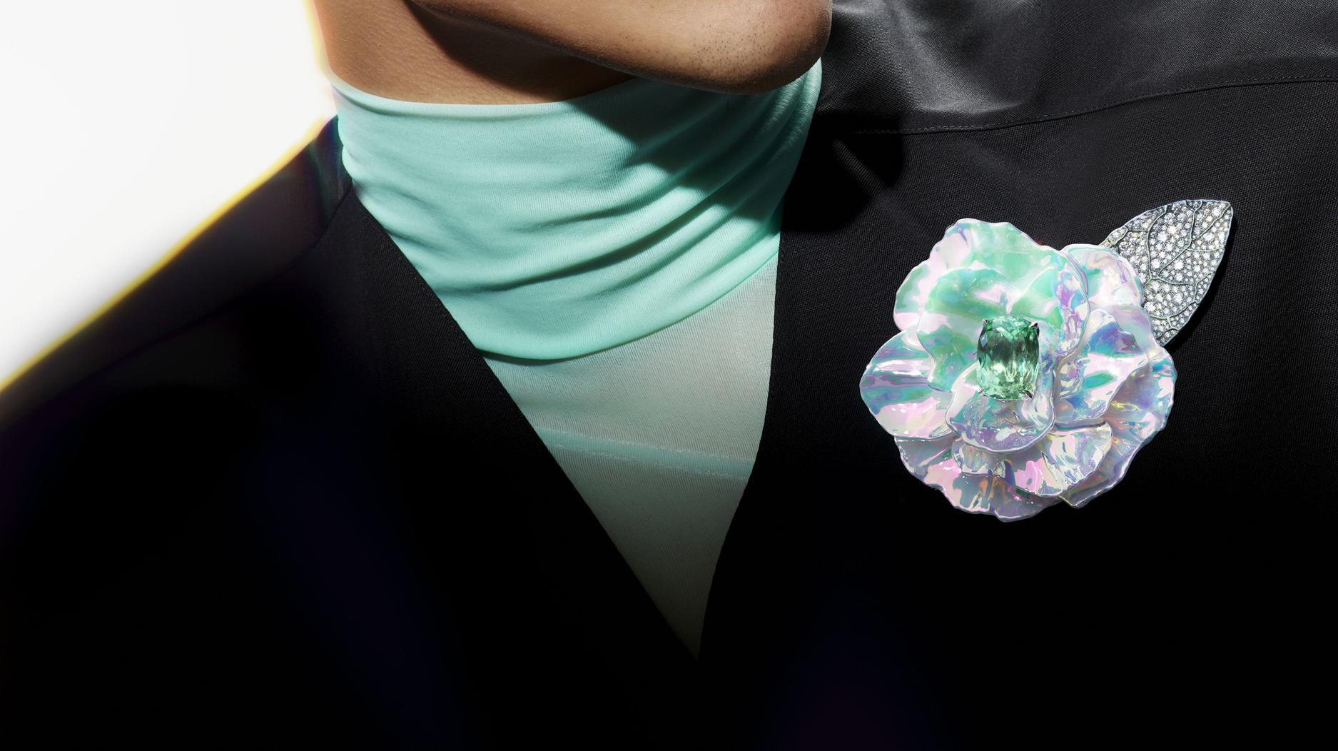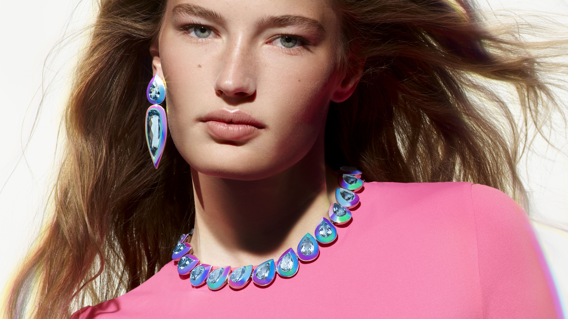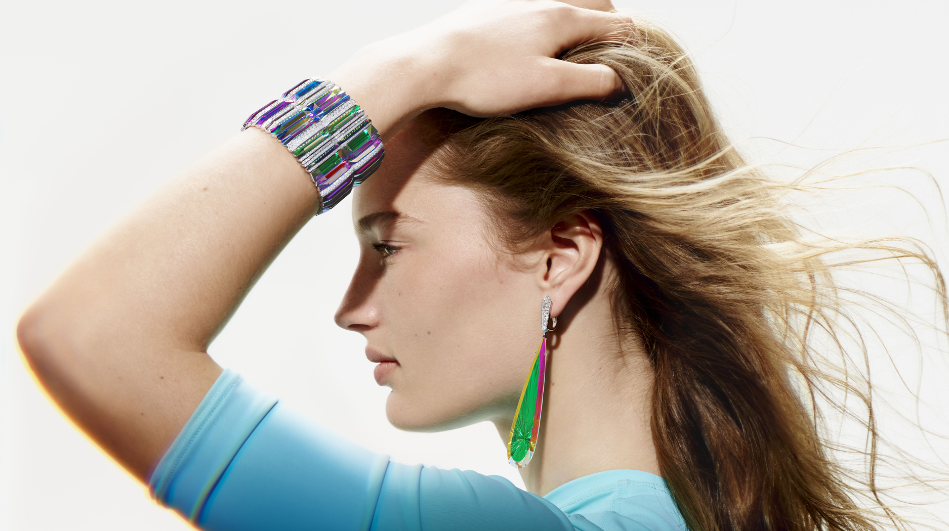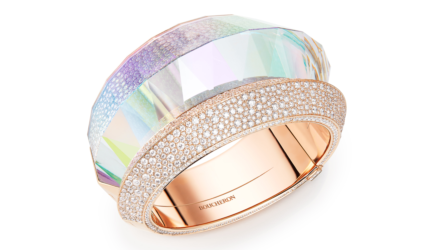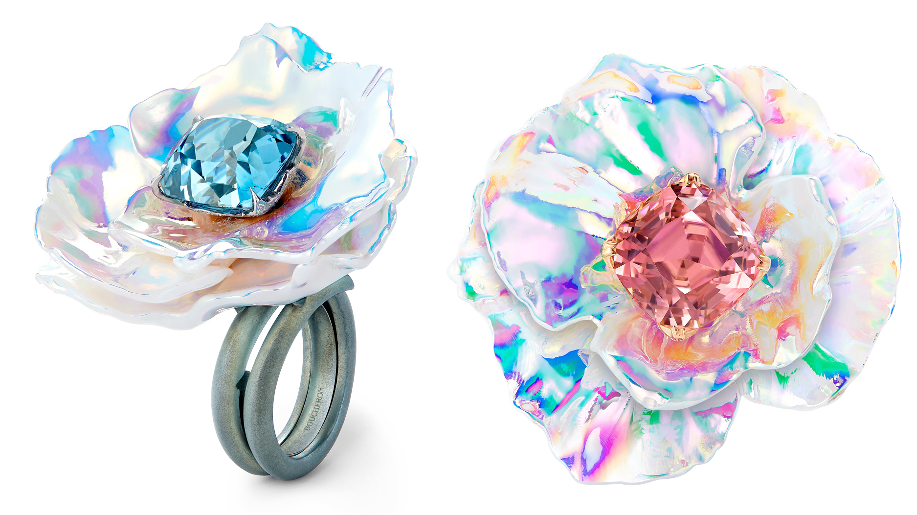 Boucheron found what it was looking for in aquamarine, which deftly complements the rainbow-esque holographic hues.