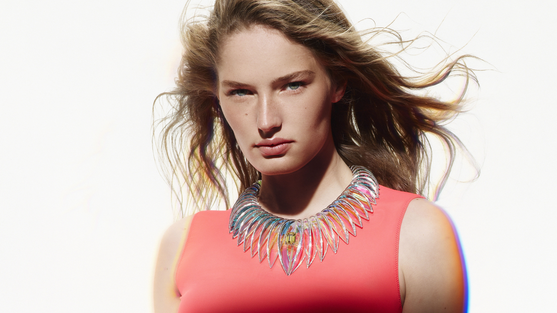 Boucheron cited rainbows, artist Olafur Eliasson’s works that center on light and color, and architect Luis Barragan as touch points for Choisne’s journey into holograms, or three-dimensional images created by light, and their expansive colors.
