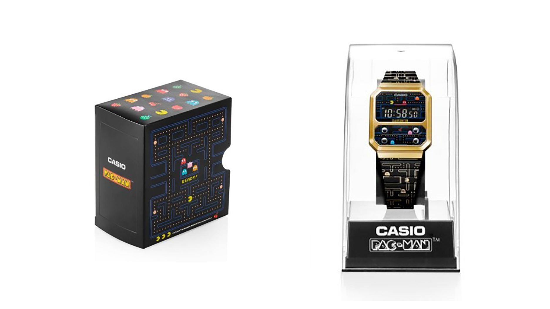 Flash-forward a few decades, Casio is reissuing the F-100 and bringing Pac-Man in on the fun.