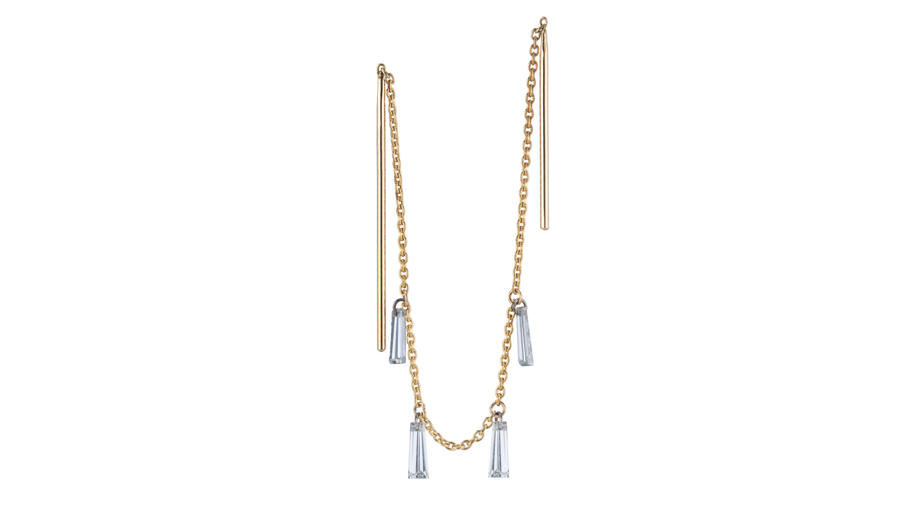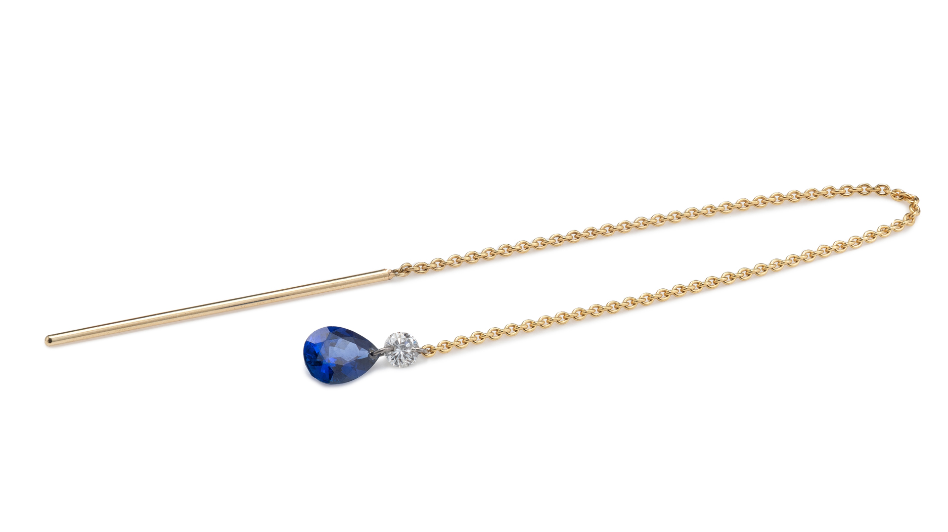 Now, delicate Y necklaces and dangling ear threader earrings feature blue and pink sapphires.