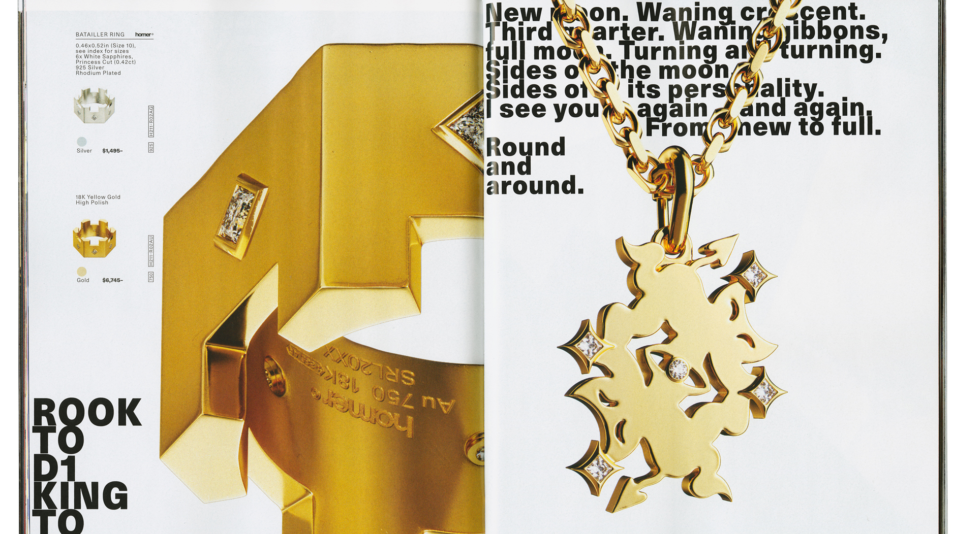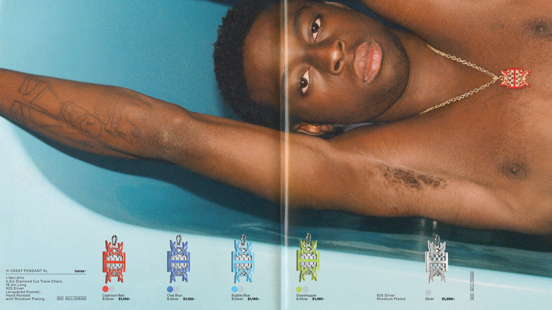 Homer announced its debut with a free limited-edition printed catalog that quickly ran out, with the cover shot by Ocean himself, and the artfully arranged campaign imagery by frequent collaborator Tyrone Lebon.