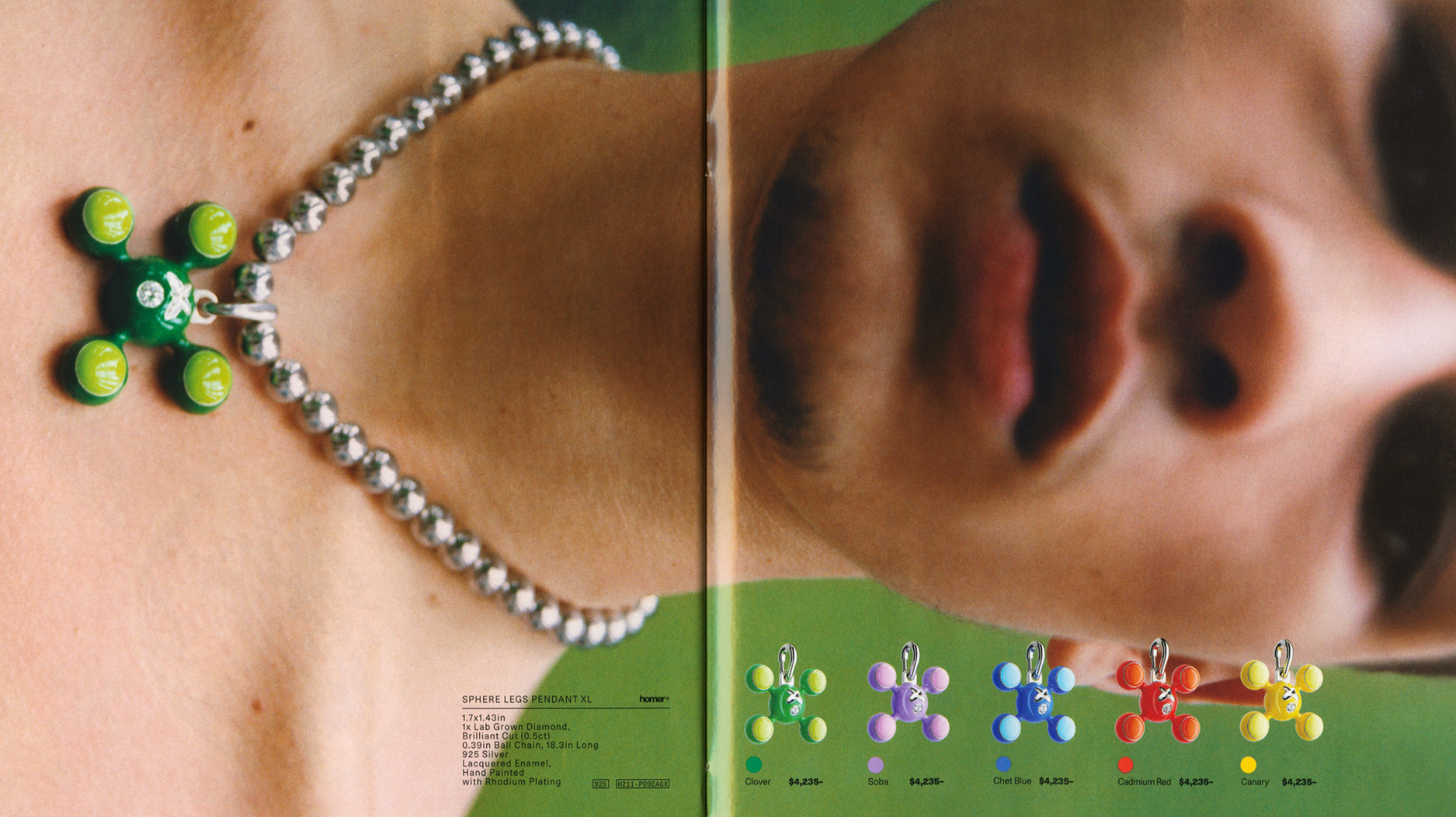 Designed in New York City, Homer is manufactured by hand in Italy in 18-karat gold, recycled sterling silver, vivid hand-painted enamel, and the aforementioned lab-grown diamonds.