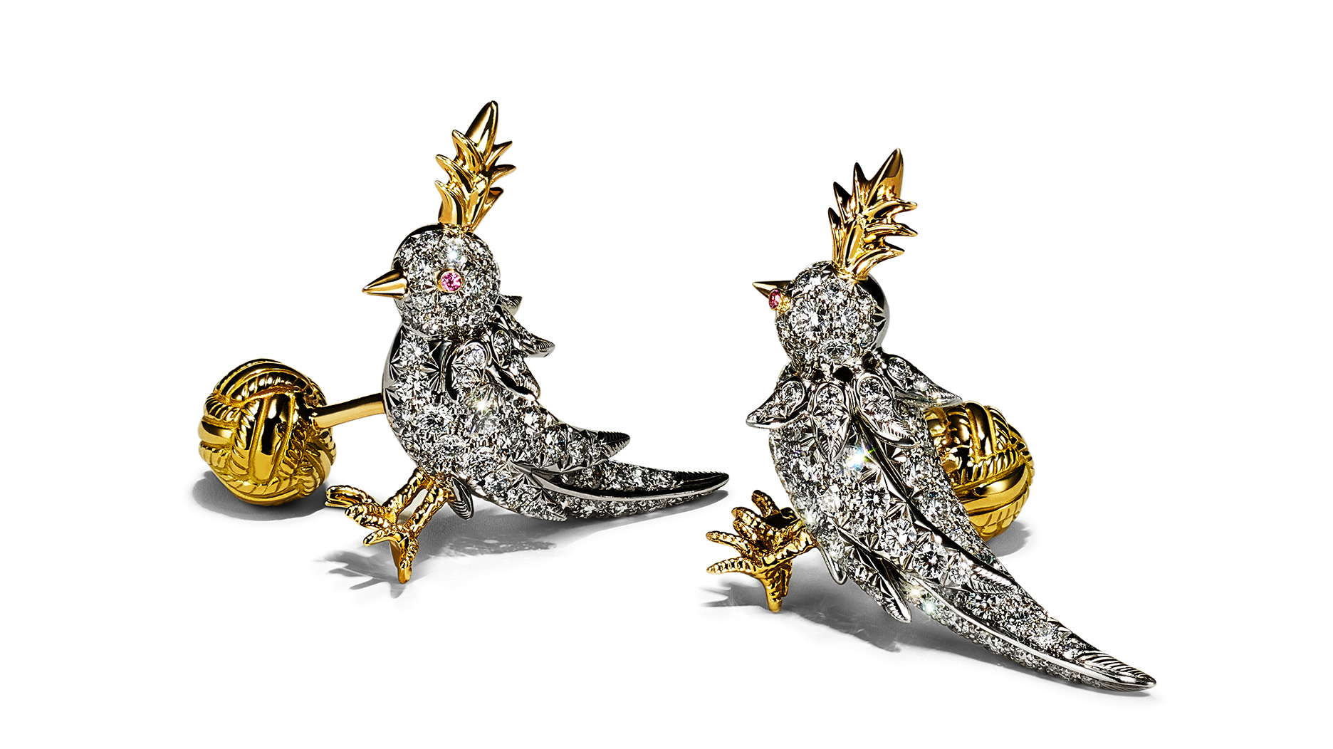 Designs from the “Tiffany T” and Jean Schlumberger collections are also featured, including Schlumberger’s “Bird on a Rock brooch,” reconstructed as a pair of one-of-a-kind cufflinks worn by Jay-Z and pictured above.