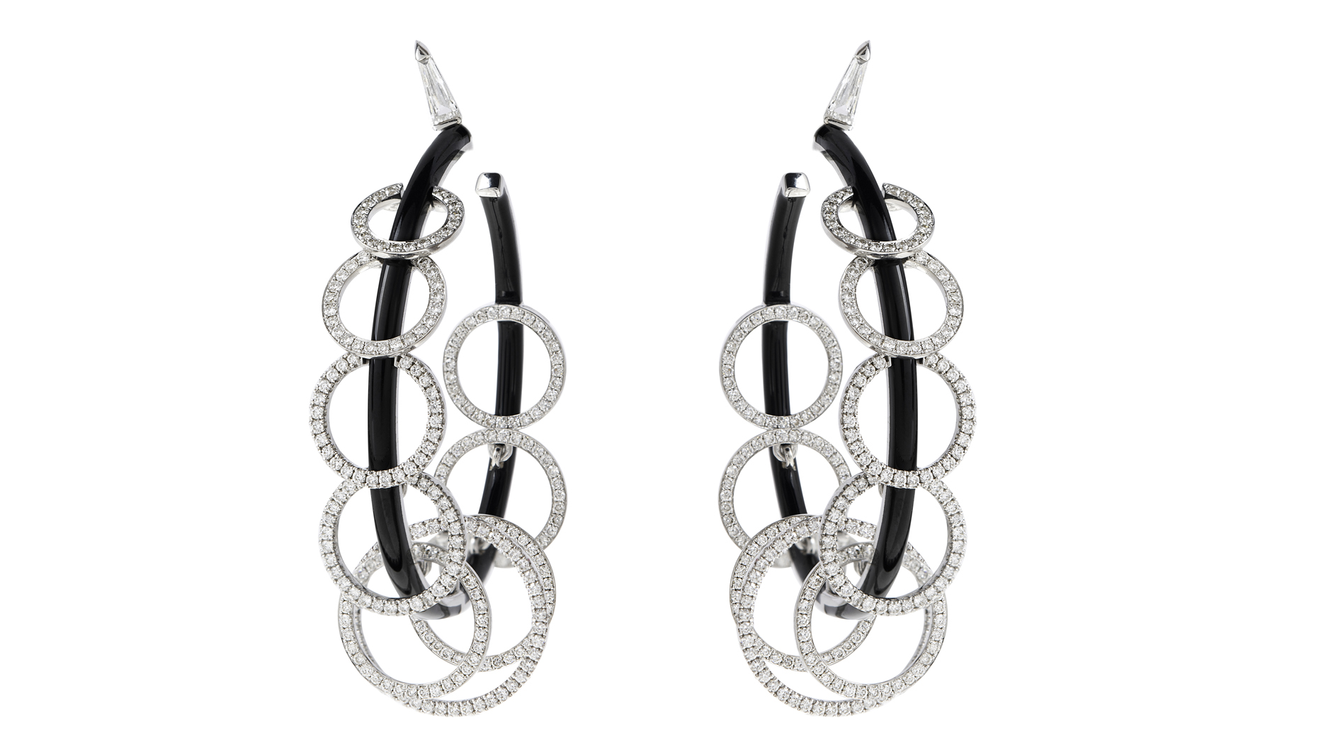Nikos Koulis 18-karat white gold hoop earrings with white diamonds and black enamel (price available upon request)