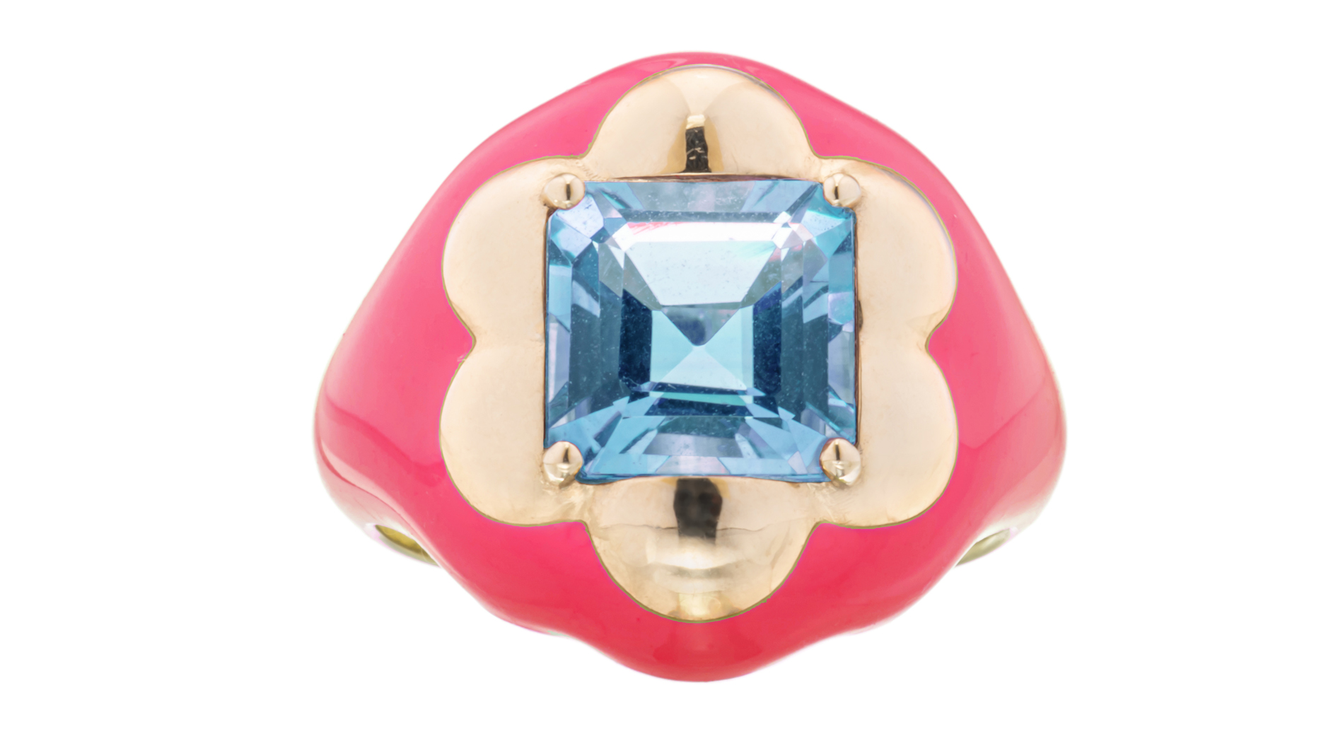 Bea Bongiasca 9-karat gold ring with blue topaz and enamel (price upon request)