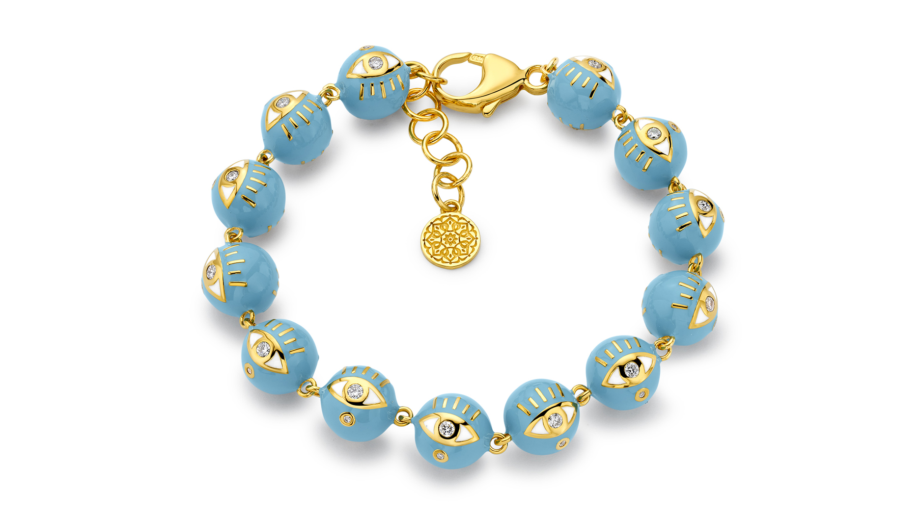 Buddha Mama 12 mm 20-karat gold bracelet with sky-blue enamel and diamonds ($29,950)