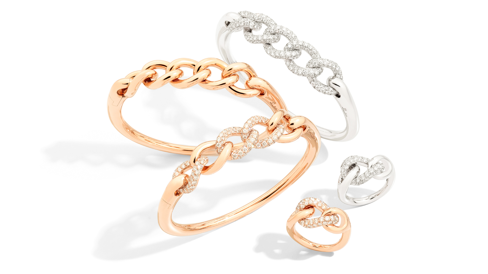 Pomellato showed its take on trending bold chain links with the luxurious new “Catene” collection. It features styles with and without diamond pave as well as pieces combining the two looks.