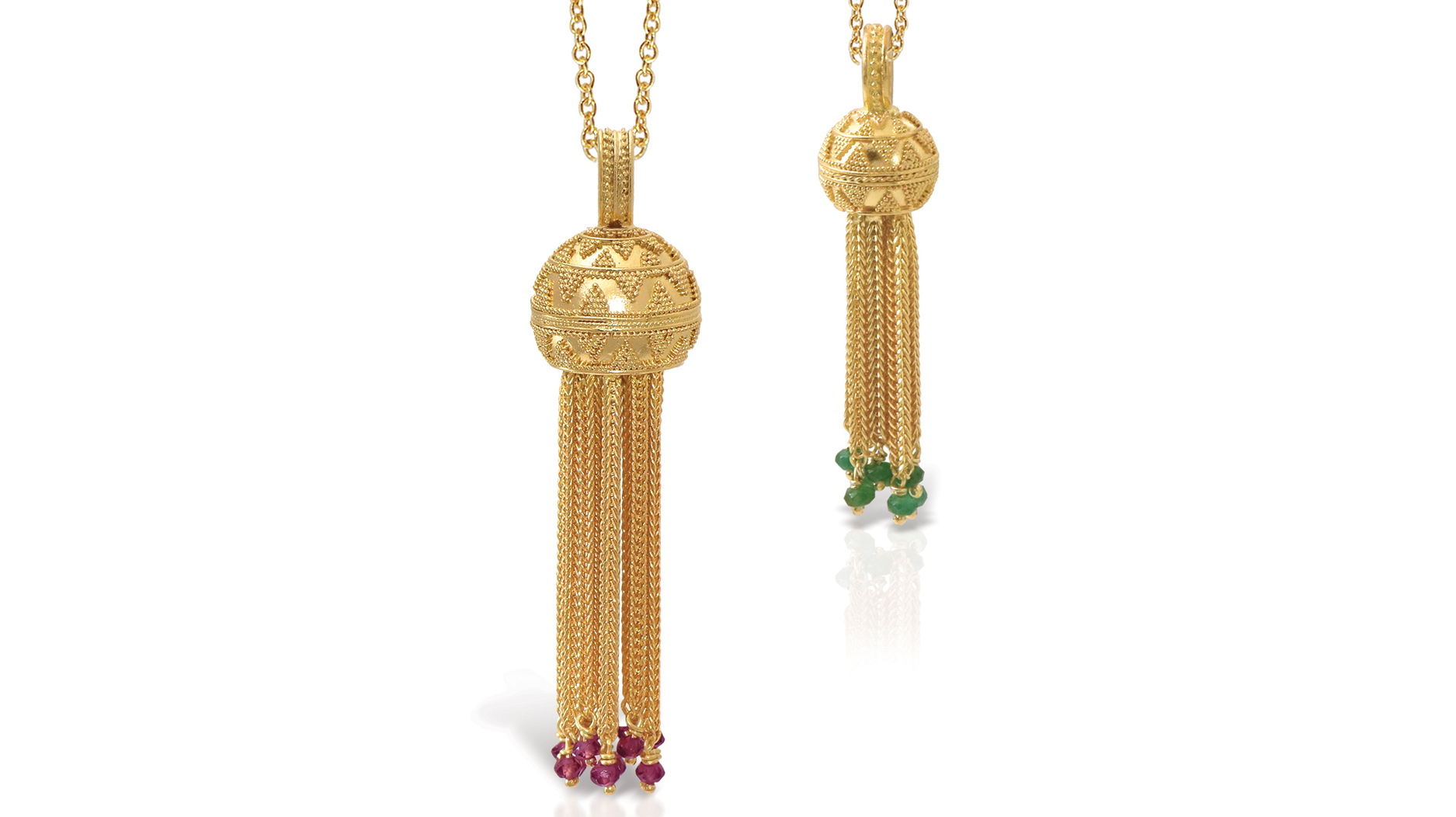 Lalaounis 18-karat yellow gold pendant with garnet ($4,470) and emerald ($2,430)