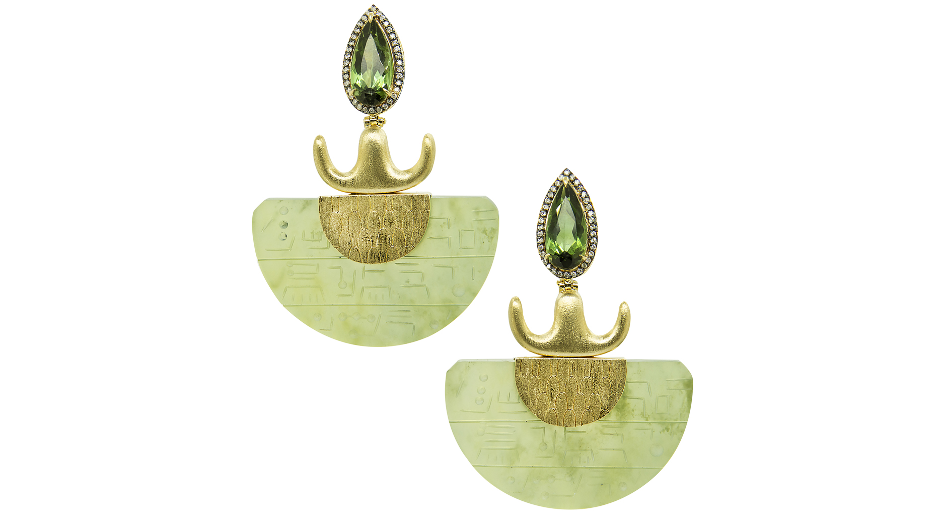 Silvia Furmanovich 18-karat yellow gold hand-painted wood earrings with tourmalines and diamonds (price upon request)