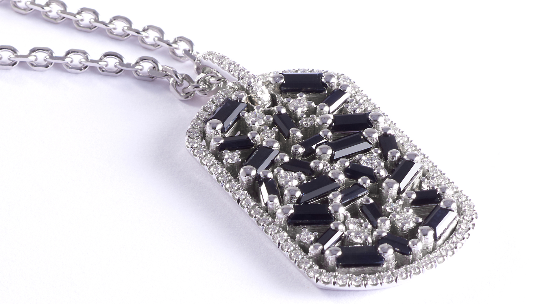 Suzanne Kalan 18-karat white gold pendant with black sapphires and white diamonds ($3,500)