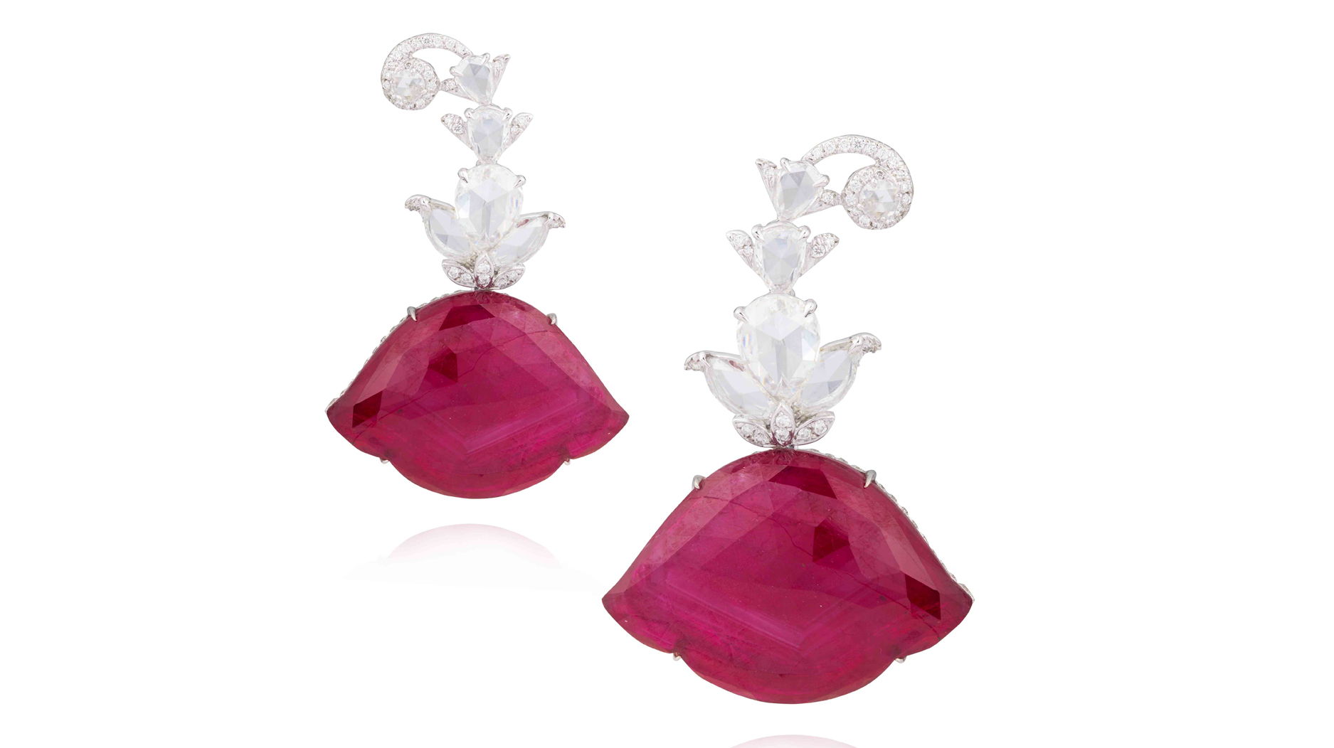 Amrapali 18-karat white gold “Lotus Earrings” with 17.31 carats of rubies and 4.06 carats of diamonds ($50,700)