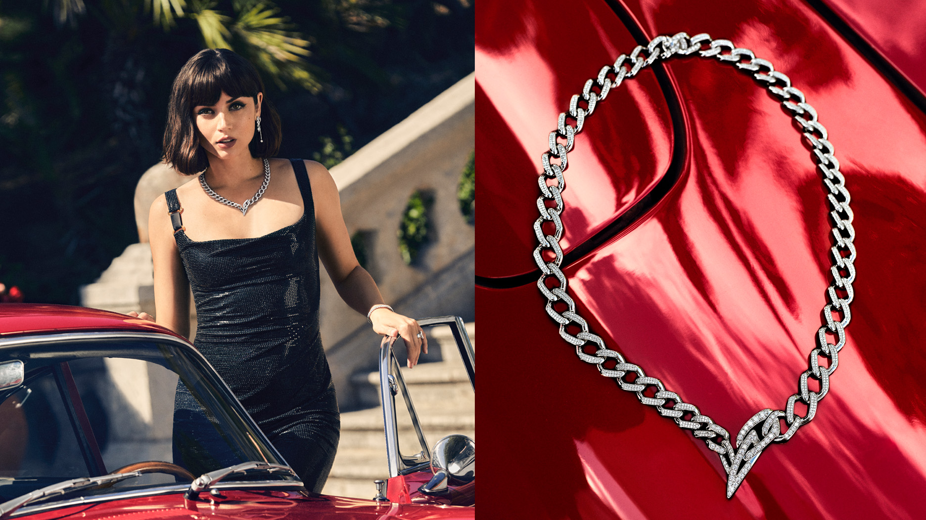 It featured de Armas—who was nominated for a Golden Globe for her performance in “Knives Out” and will be in the upcoming films “No Time To Die,” “Blonde,” and “The Gray Man”—wearing diamond jewelry in photos and videos shot along the coast of Portugal.