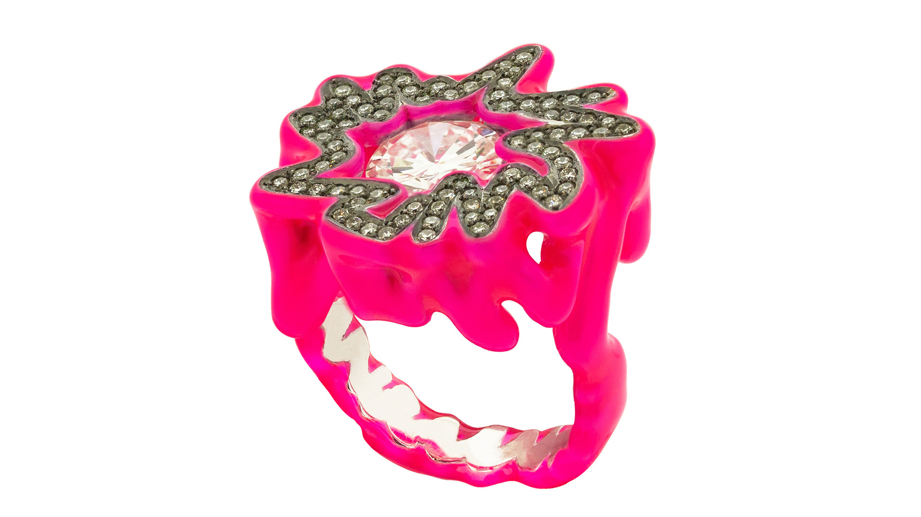 Solange Azagury-Partridge "Hot Pink Diamond Scribbles Ring" with 2.01-carat diamond set in 18-karat white gold and rhodium with lacquer