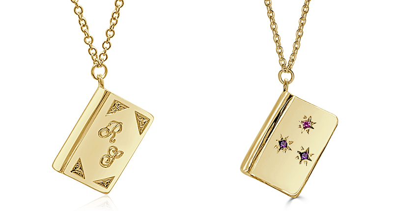Described as the store’s “first design for a greater purpose,” the jewelry at the center of Book for a Book is simple—an engravable book pendant in sterling silver ($95) or 14-karat white, rose or yellow gold ($575) on a cable chain.