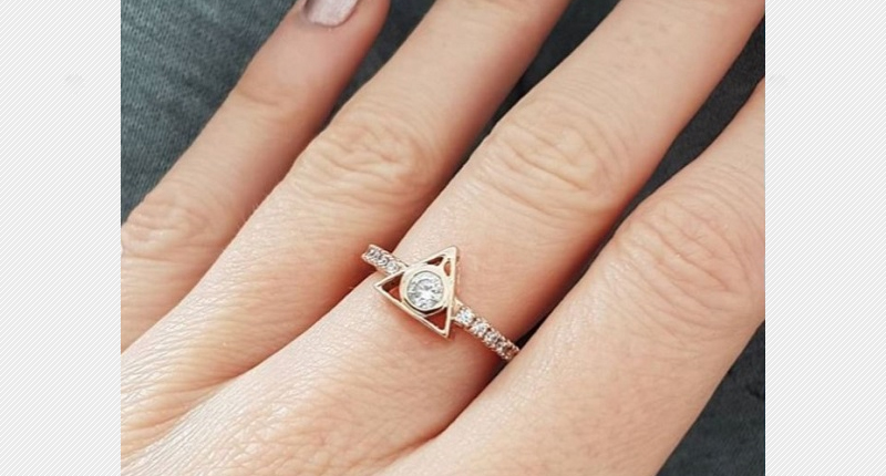 The “Mystic” diamond ring, shown above, was inspired by the Deathly Hallows symbol from the Harry Potter series.