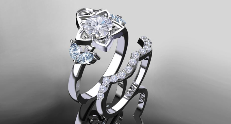 The “Destiny” diamond bridal ring set features a star-shaped “Paopu” fruit from the video game series Kingdom Hearts. The fictional fruit is native to Destiny Islands, the home world of main game characters Sora, Riku, and Kairi.