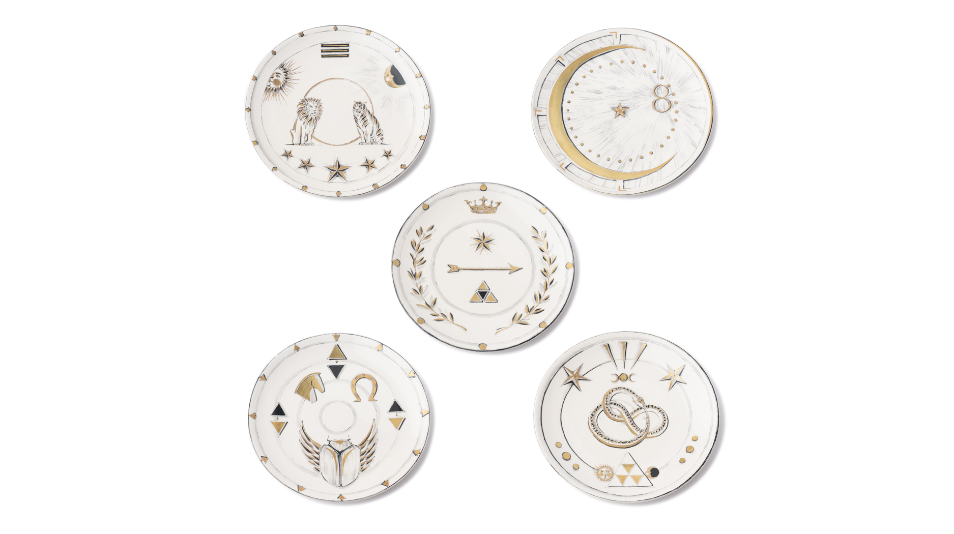 A collaboration with Laboratorio Paravicini on handmade plates feels like a natural fit for Foundrae, with the brand’s signature symbols depicted in large scale for further admiration. Dessert plates are offered in sets of five ($475), while miniature plates are offered individually ($65).