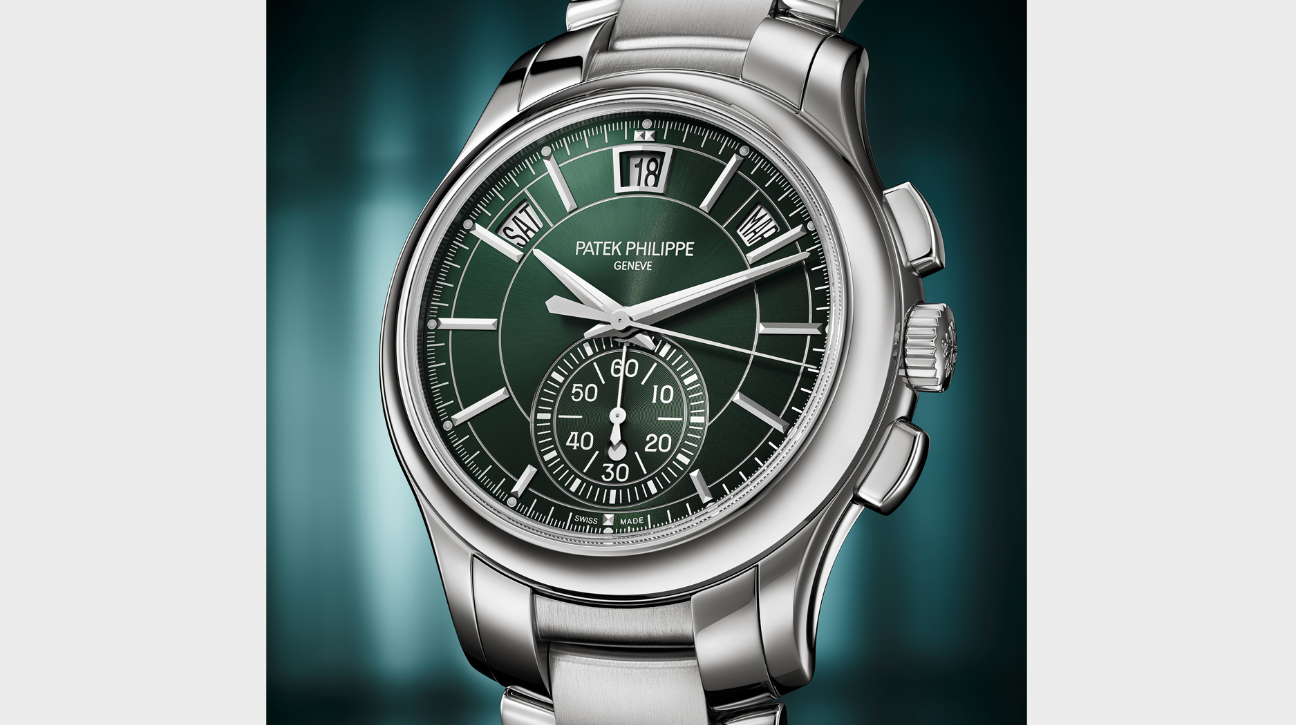 Combining this movement with additional complications is the new 5905/1A, a chronograph with annual calendar, and the 5930P, a chronograph with world time.