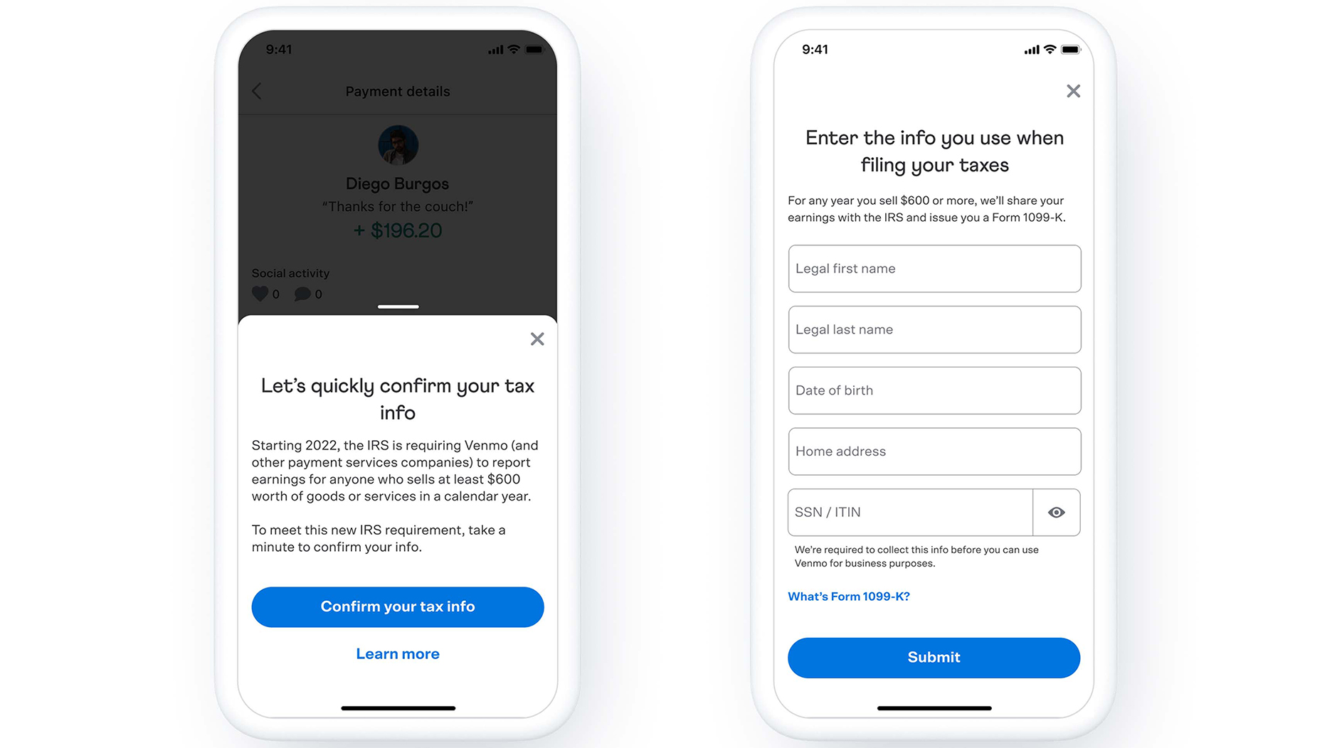 In its FAQ section, Venmo noted that customers may receive an in-app notification or email asking them to confirm information they use when filing taxes, like a social security number and address.