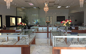 The larger store also has a seating area for clients to get comfortable while working with staff on a custom design or while they wait for repairs. A children’s area is stocked with a play set and toys to keep young guests occupied while the adults shop, and all customers are offered beverages and snacks--pretzels, crackers, coffee, water and even wine “for those over 21,” Malak laughs.