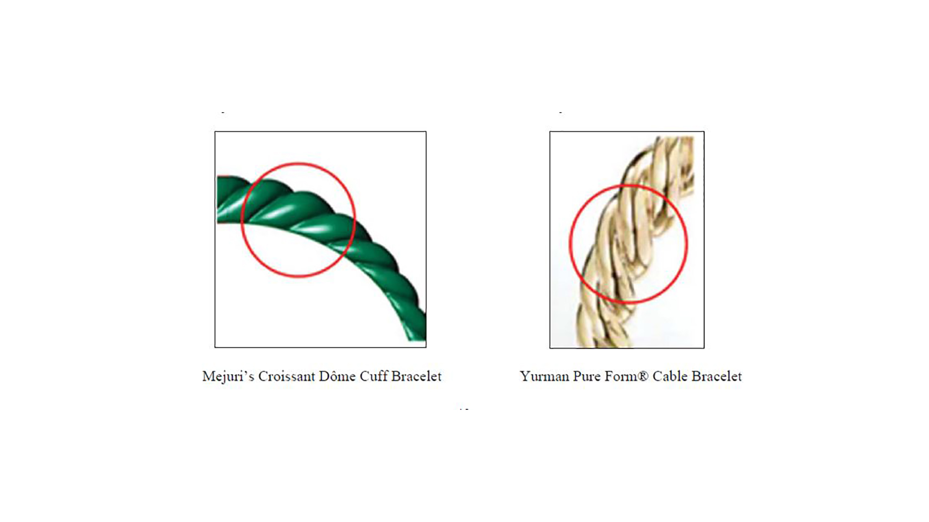 “Given the commonplace nature of the twist motif, Yurman cannot legitimately claim the ‘Pure Form’ cable bracelet design as unique to Yurman, much less as protectable trade dress exclusive to Yurman. Nor can Yurman legitimately claim that consumers associate the appearance of the ‘Pure Form’ cable bracelet with Yurman, as opposed to any other company offering a similar design,” said Mejuri.
