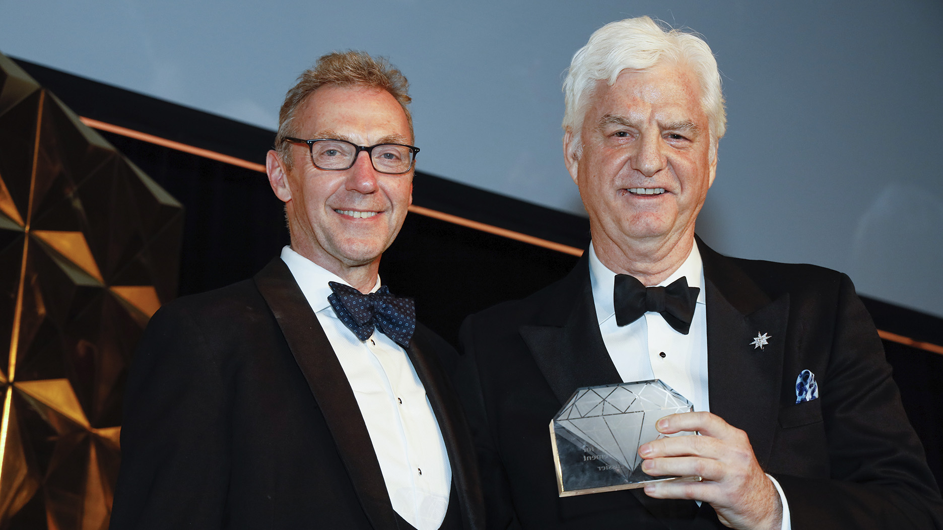 Friday night’s celebration capped off with the presentation of the Gem Award for Lifetime Achievement to longtime De Beers executive Stephen Lussier, who is retiring this spring after a 37-year career marketing diamonds at De Beers.