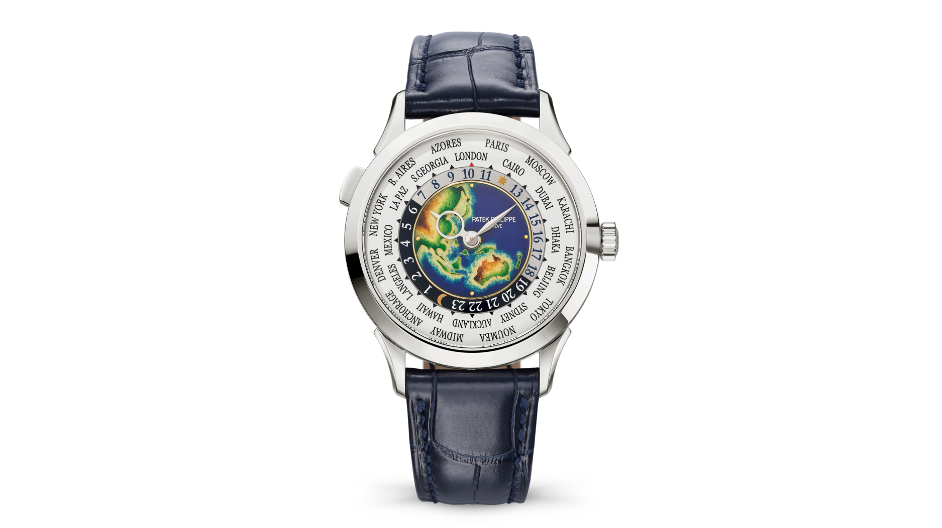 The new 5230P timepiece features the self-winding 240 HU caliber with World Time display that shows all 24 time zones.