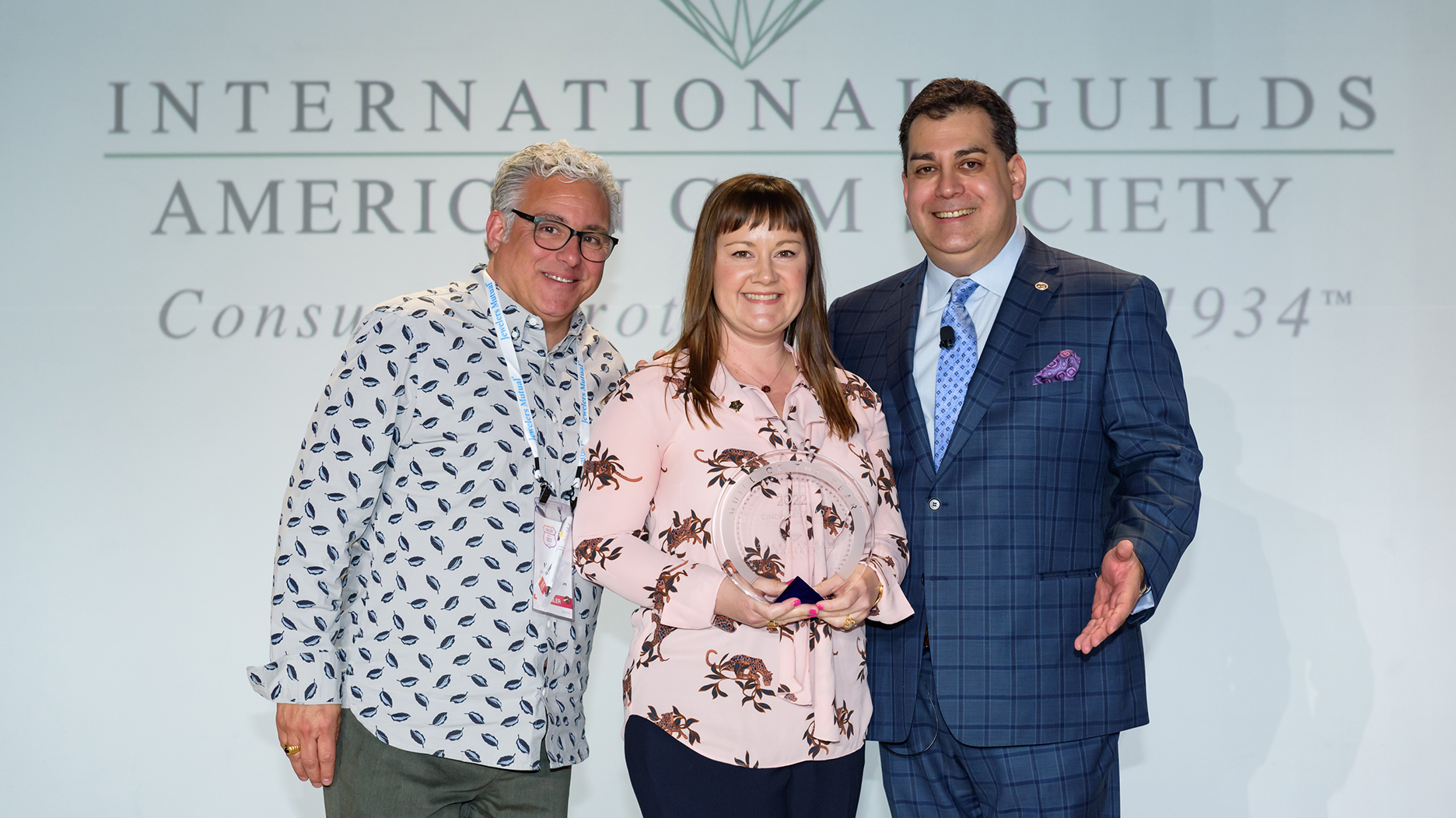 The Guild of the Year Award for 2022 went to the Greater Cincinnati Guild, presented by Altman and accepted by Kara Huddleston of Huddleston Fine Jewelry Appraisals.