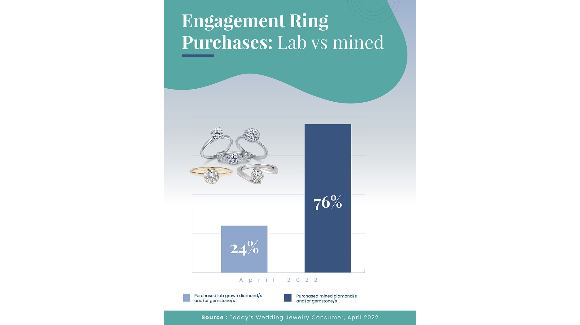 “Today’s Wedding Jewelry Consumer” shares data about engagement ring market size, lab-grown and natural diamonds, and more.
