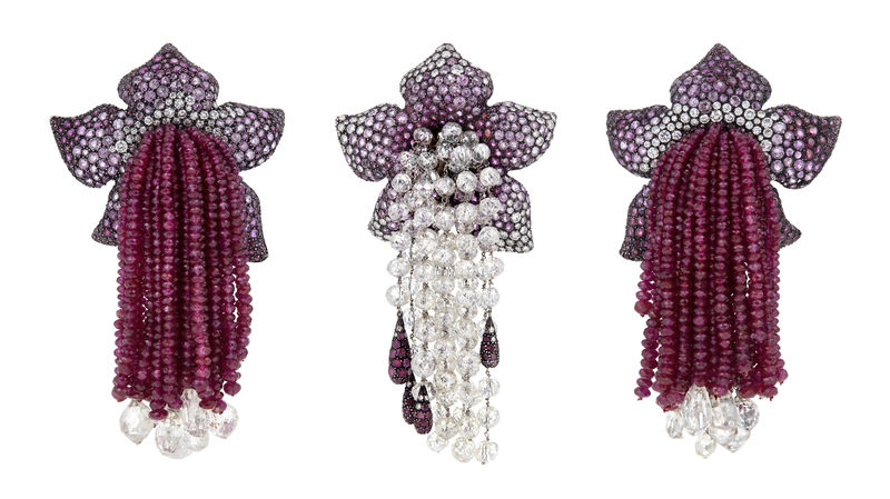 There were also the above three “Fleur Pompons” brooches from 1989 featuring diamonds, rubies, and sapphires. Originally estimated to earn between $200,000 and $300,000, the trio garnered nearly double that at $579,600.
