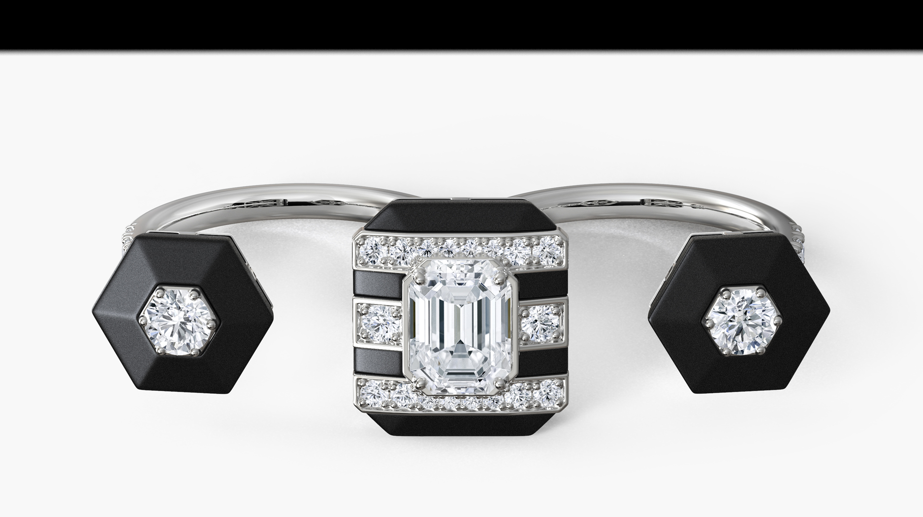 Black aluminum is utilized alongside yellow rough and polished diamonds in several styles, the striped pattern an ode to Vasarely.