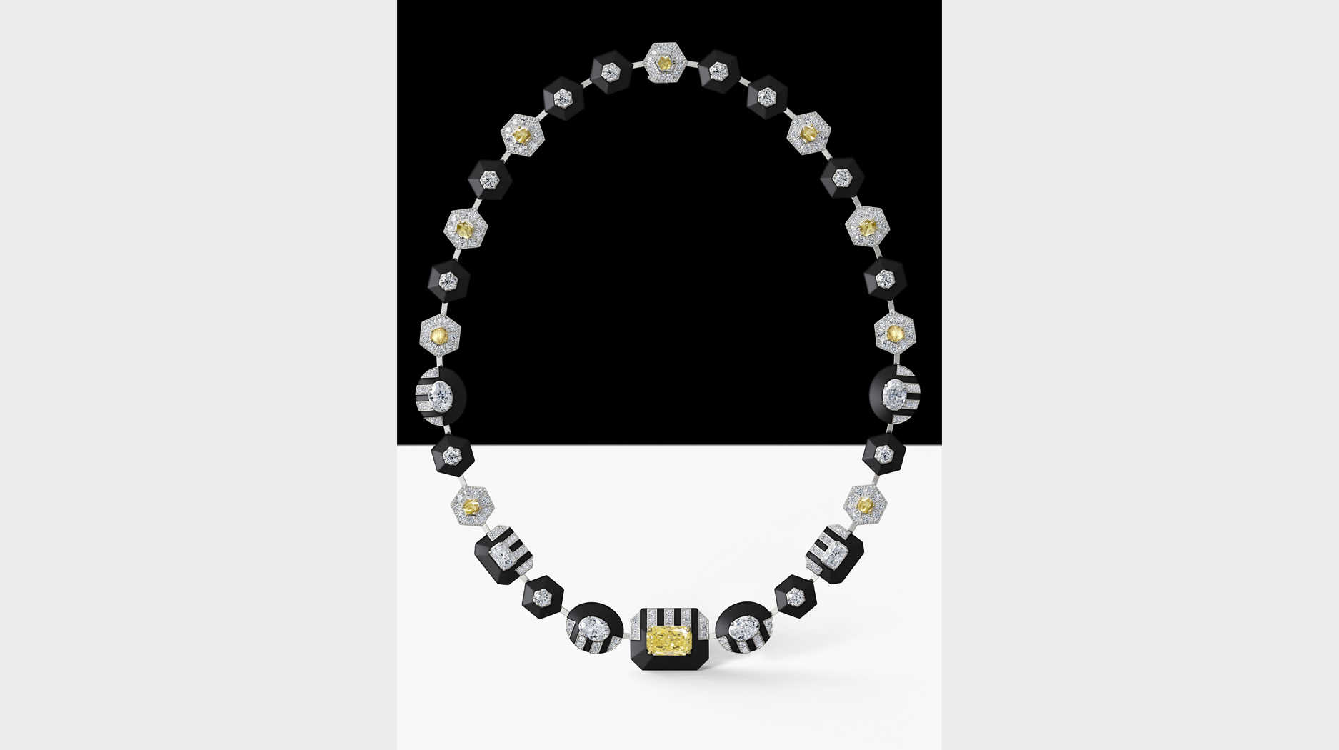 The “Ascending Shadow” choker features a total 57.28 carats of diamonds, featuring a mix of cuts and colors.