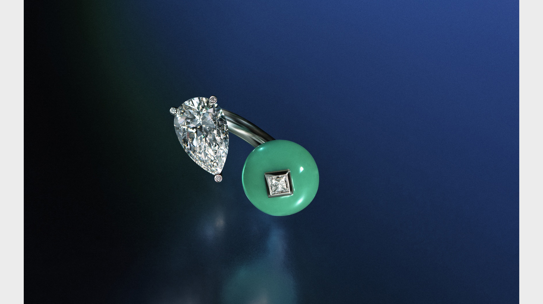 A 20.1-carat pear-shaped flawless white diamond from the Natural Works of Art diamond collection can be detached.