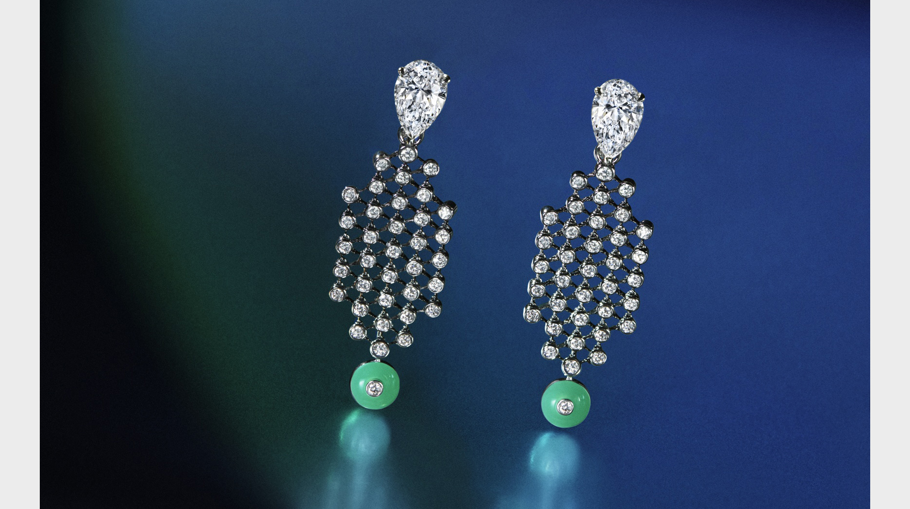 This mesh-like necklace with 46.09 carats of diamonds is the hero piece of the “Midnight Aura” set.