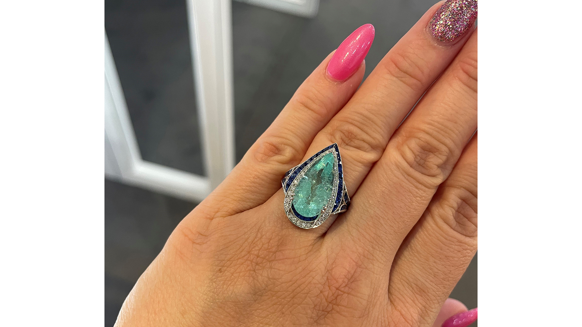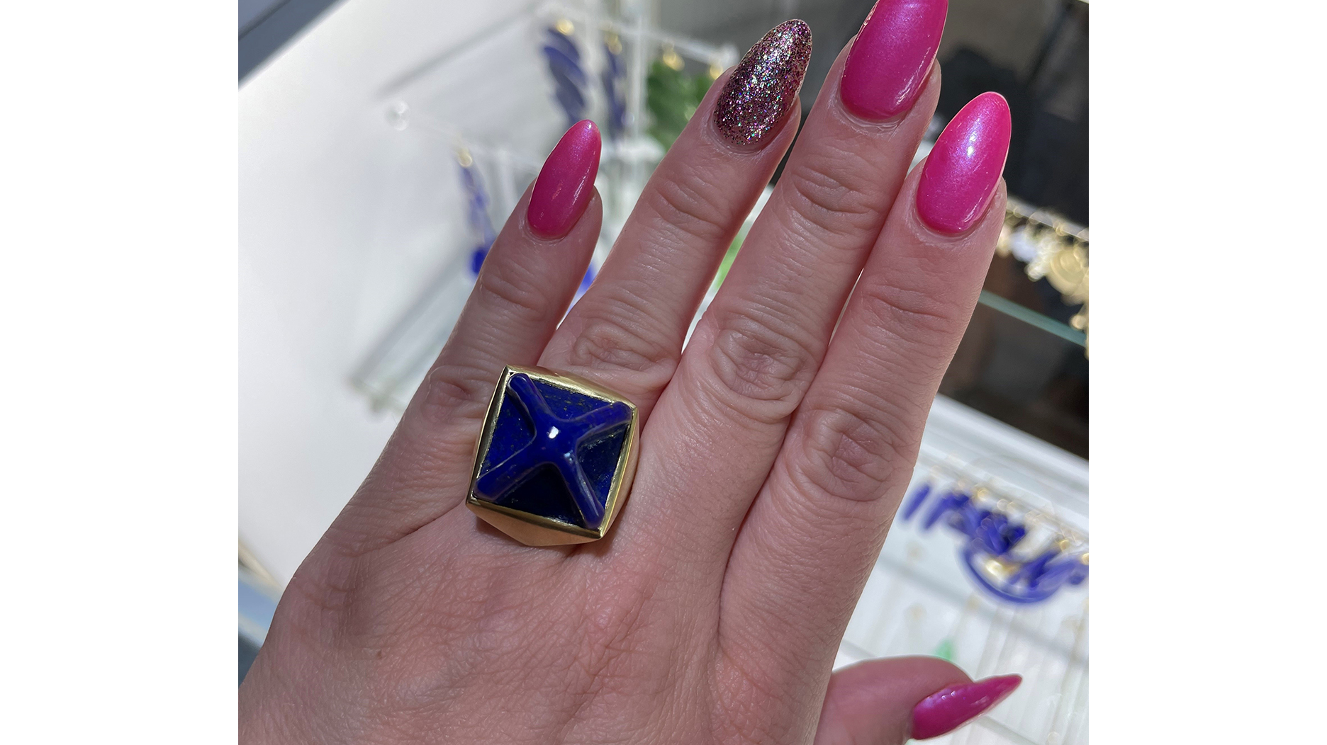 Another must-see was a one-of-a-kind, hand-cut lapis pyramid ring, seen below.