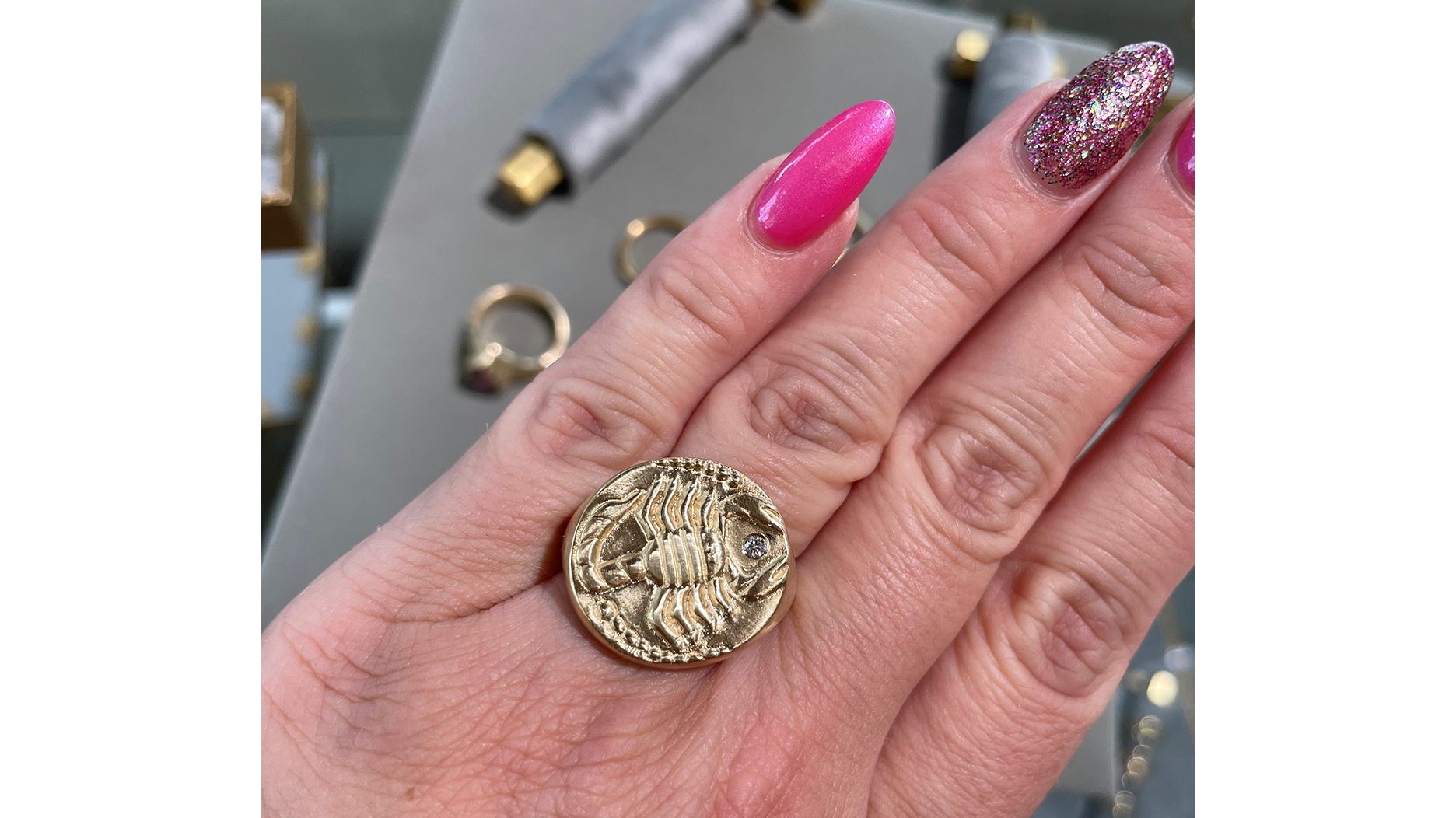 My favorite was the below Scorpio signet ring, which is a part of her “Zodiac” collection. I happen to be a Scorpio, but Highsmith said it’s a popular style for the other star signs as well based on the look alone.