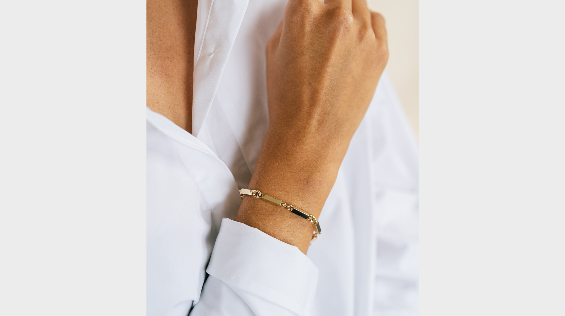 The designer behind the Brooklyn, New York-based brand, Madison Snider, based the design of her newest piece on a vintage necklace. She imagined the resulting bracelet as the perfect canvas for custom engraving.