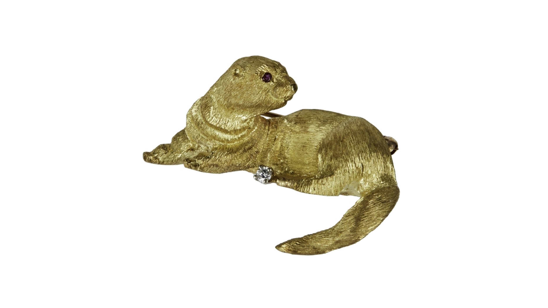 Also, who can resist the adorable otter brooch above? Cast in 18-karat gold, this little guy has a round diamond on his belly and a ruby eye. The otter pin sold for $5,760, against an estimate of $600-$800.