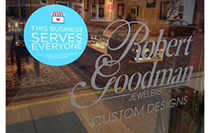 Bob Goodman, a third generation jeweler who owns and operates Robert Goodman Jewelers with his wife Rose-Marie, said he was one of the first merchants on Main Street in Zionsville, Ind. to purchase and put up his Open for Service sticker, after learning about the movement from a customer via a Facebook message.