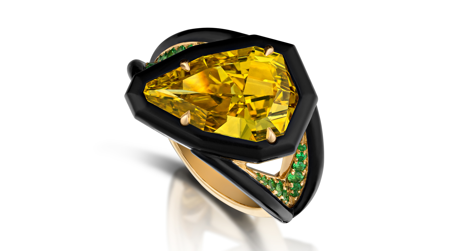 There were several spinel pieces, and many sapphires and tourmalines, too. Step-cut gemstones and yellow gold were also trending, while rare stones like kornerupine and dumortierite also made appearances.