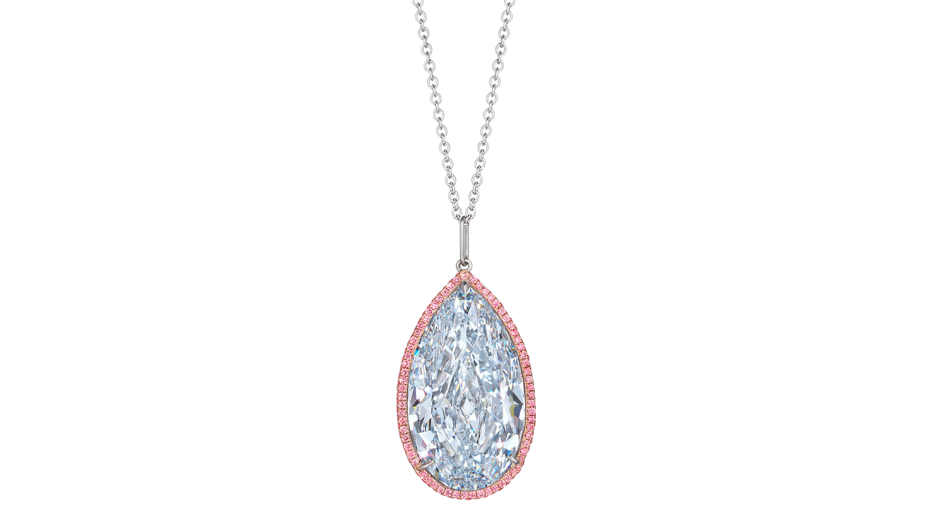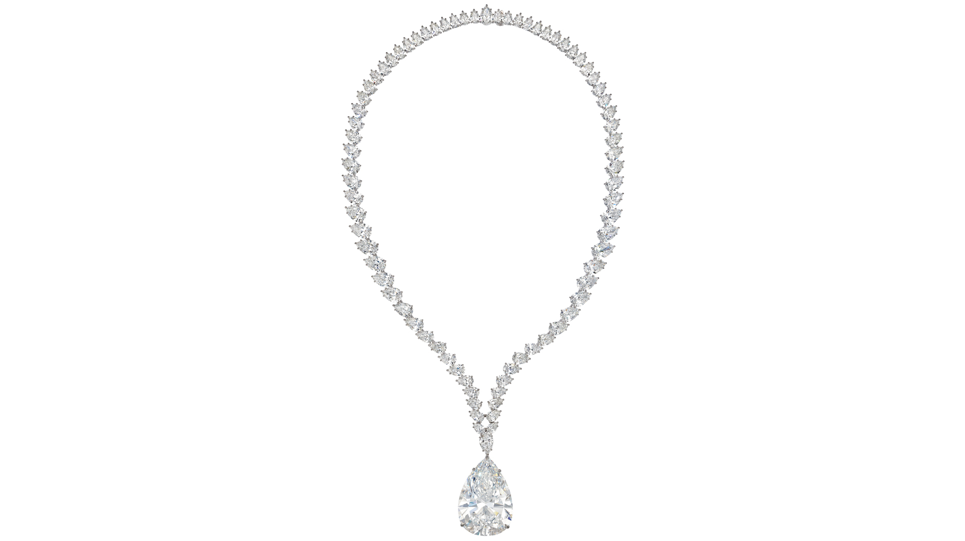 At No. 2 was a pendant necklace featuring a pear brilliant-cut diamond weighing 86.64 carats and 78 pear diamonds, set in platinum and white gold, which also fell within its estimate when it sold for $5.7 million.