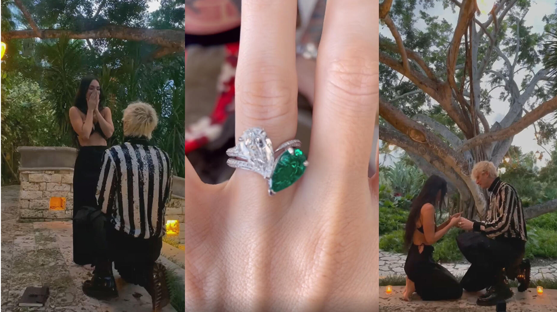Megan Fox’s engagement ring stack from Machine Gun Kelly, designed by Stephen Webster and comprising a nesting white diamond ring and emerald, has undoubtedly lit a fire beneath the trend.