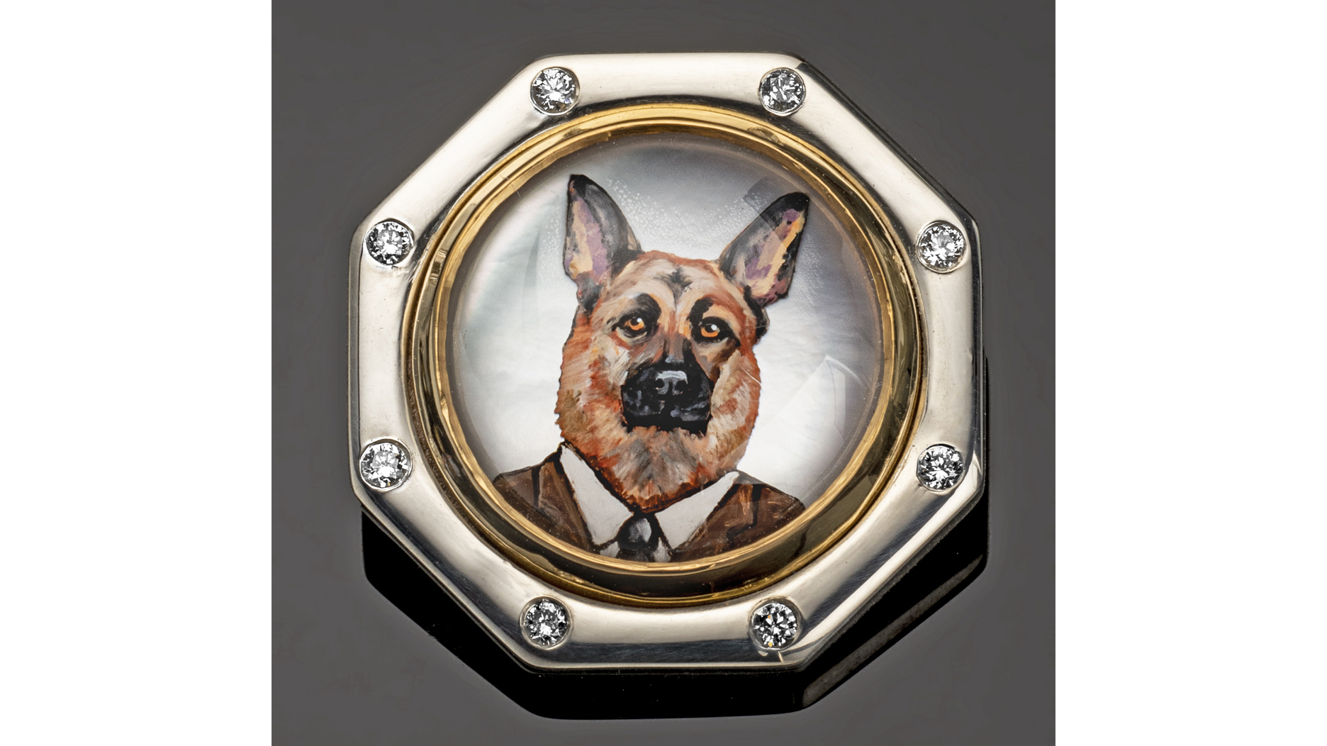 The “Rémanimals” brooches are a lighthearted spin on classic portrait miniatures.