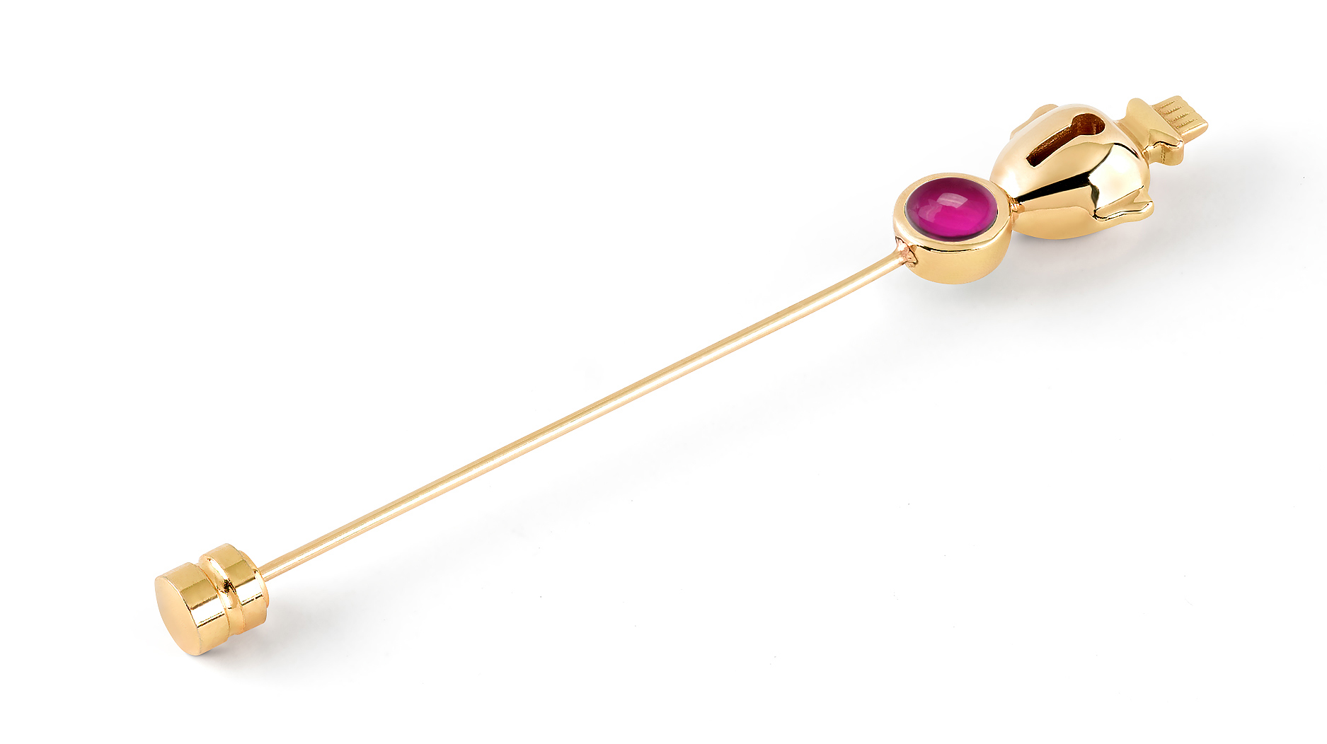 “Golden Heart” tie pin in 18-karat yellow gold with ruby ($1,700)
