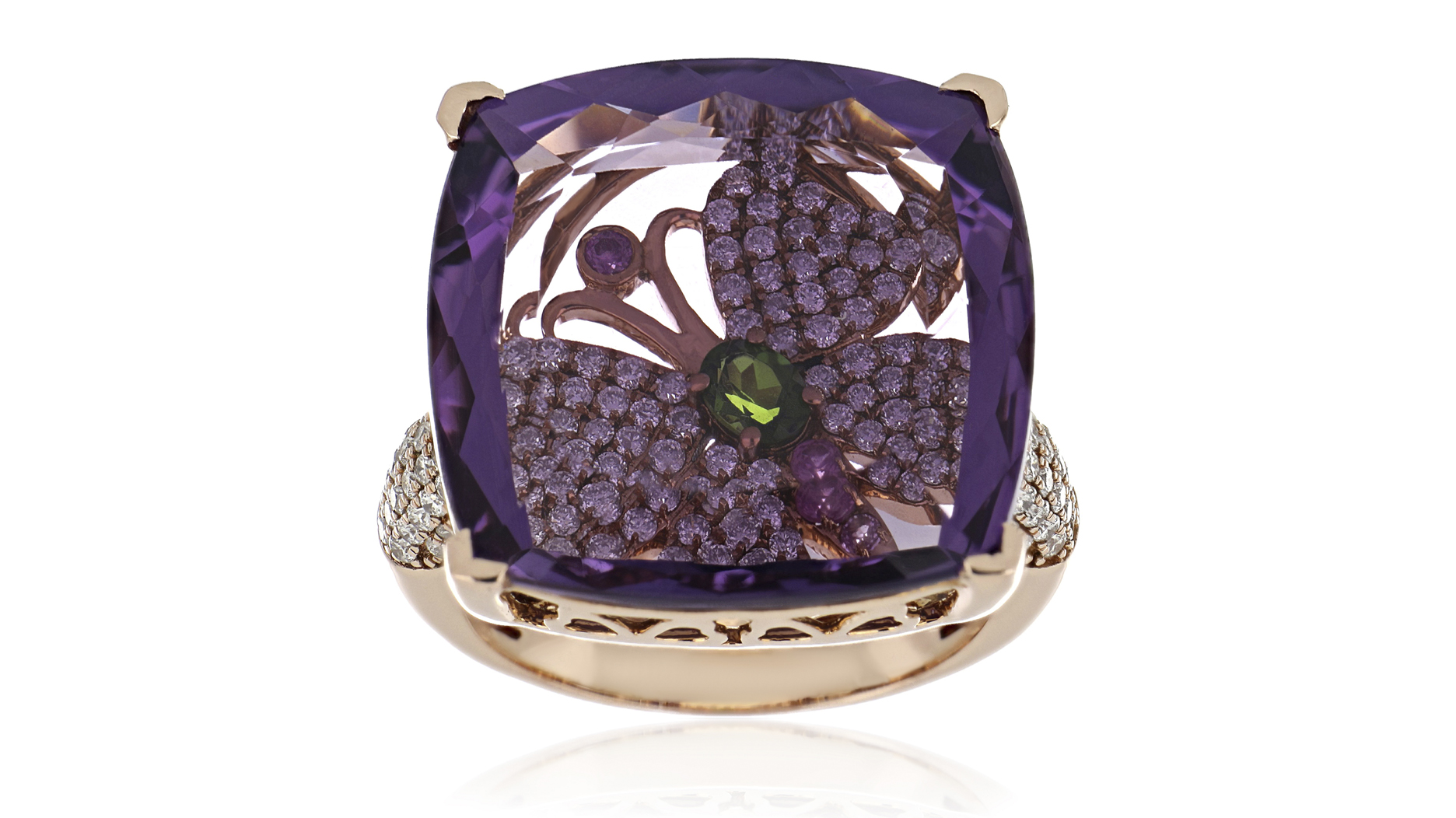 The bold color paired with the affordability of the stone makes amethyst a go-to gemstone for designers to play with larger carat weights and interesting cuts.