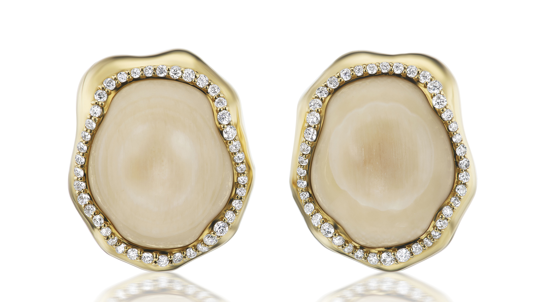 “Osso Earrings” in 14-karat yellow gold with prehistoric woolly mammoth fossil and diamonds ($7,150)