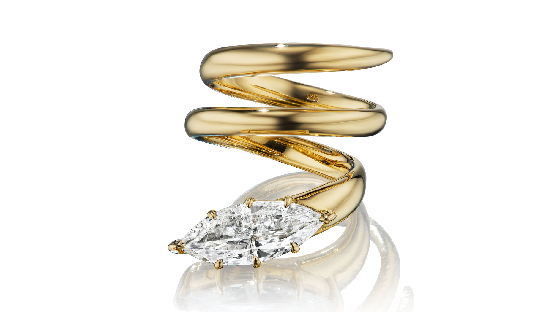 “Eight-Prong Serpent Ring” in 18-karat yellow gold with 2.01-carat marquise-cut diamonds ($31,500)