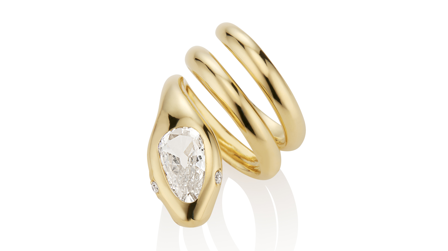 “Serpent Ring” in 18-karat yellow gold with 1.4 carat antique pear-shaped diamond ($16,890)