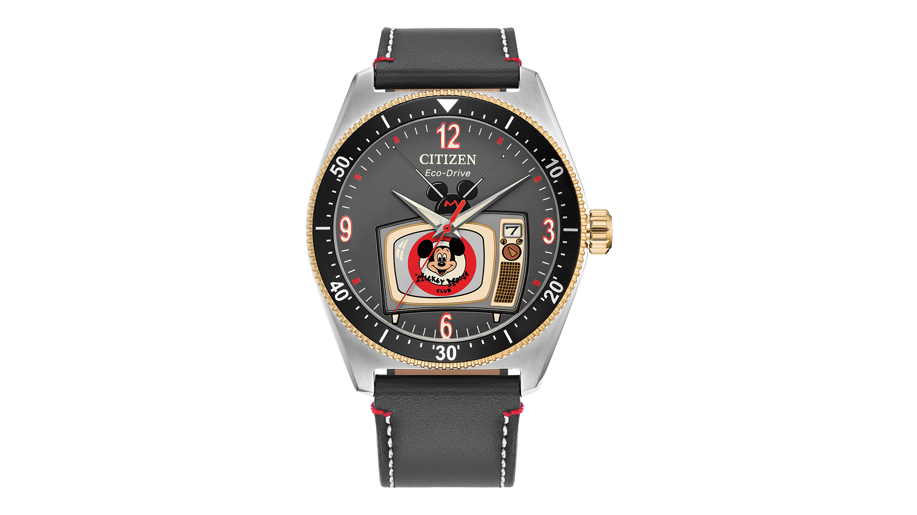 The special edition Disney Mickey Mouse Fan Club watch is an homage to the show, featuring a vintage television with the show’s original logo and the date window in the channel space, topped with a pair of Mickey Mouse ears.