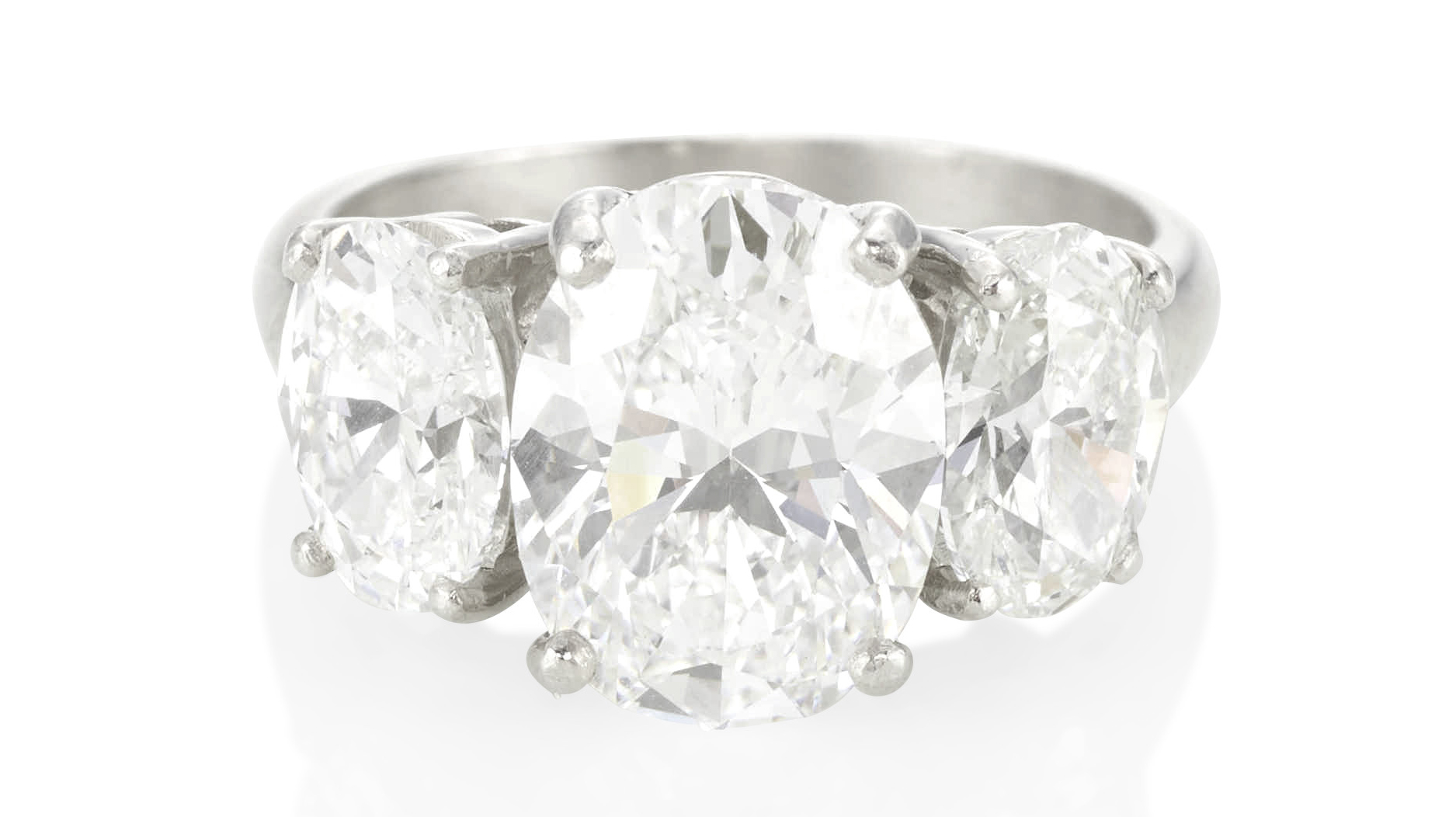 The platinum and three-stone diamond ring above with 6.05 total carats sold for $86,000, well above its $35,000-$55,000 estimate.